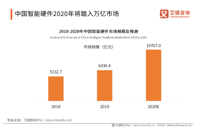 數(shù)據(jù)顯示,中國智能硬件市場發(fā)展較快,2020年市場規(guī)模預(yù)計達到10767.0億元。艾媒咨詢分析師認為,智能制造行業(yè)發(fā)展逐漸走向成熟,依托各類基礎(chǔ)技術(shù)支撐及應(yīng)用場景拓展,智能硬件成為消費重要品類。