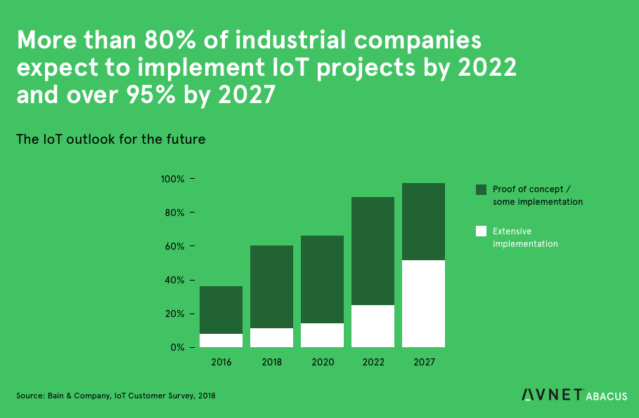 根據貝恩公司(Bain &Company)對474家工業企業的調研,其中80%計劃在2022年之前部署工業互聯網,而2027年這一比例將高達95%。