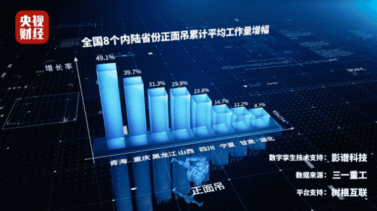 央視財(cái)經(jīng)挖掘機(jī)指數(shù)顯示,2021年正面吊累計(jì)平均工作量(小時(shí))同比增幅TOP10省份中,有8個(gè)內(nèi)陸省份,其中有3個(gè)位于西北地區(qū)。這8個(gè)省份分別是青海(49.10%)、重慶、黑龍江、山西、四川、寧夏、甘肅、湖北等。