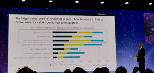 Steve Bell認為對企業(yè)而言,目前企業(yè)IoT最大的挑戰(zhàn)就是數(shù)據(jù),涉及數(shù)據(jù)的隱私安全保護、數(shù)據(jù)的分析和挖掘以及數(shù)據(jù)與目前IT的關聯(lián),這三點阻礙了企業(yè)IoT的部署,其他的阻礙因素包括執(zhí)行復雜度、缺乏好的商業(yè)模式、缺乏有力的支持組織等。